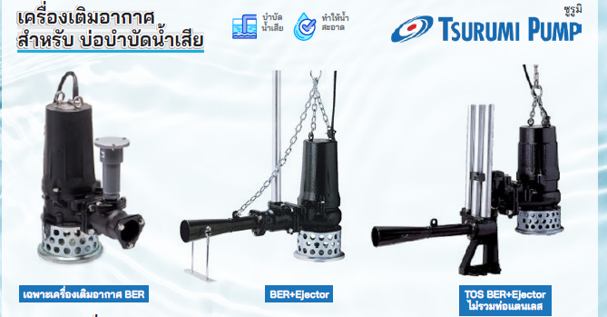 เครื่องเติมอากาศใต้น้ำ Submersible EjectorBER Series เป็นเครื่อง ejector แบบแช่น้ำที่มีปั๊มน้ำเสียรุ่น B Series และ Venturi-jet pump ประกอบกันอยู่ปั้มน้ำรุ่นนี้มีกลไกการดูดอากาศด้วยตัวเอง และปล่อยส่วนผสมระหว่างอากาศกับน้ำออกทางตัว diffuserกระแสที่พ่นออกมาอย่างมีกำลังทำให้เกิดการหมุนวน ซึ่งทำให้การหมุนในแนวดิ่งไม่สามารถสู้ได้อัตราการไหลของอากาศ-curve ความลึกของน้ำอัตราการไหลของอากาศถูกแสดงในสภาวะมาตรฐาน เช่นอุณหภูมิที่ 20 องศาเซลเซียส ความกดอากาศ 1 ATM อาจจะมีค่าผันผวนที่ประมาณ 5 %