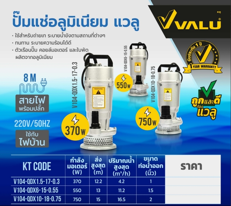 VALU ปั๊มแช่ ปั๊มไดโว่ ปั๊มจุ่ม