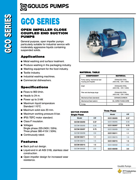 GCO,GCOM Open-Impeller stainless steel 316 pumps