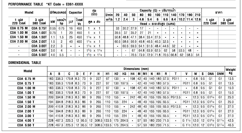 สินค้า ใน EBARA CDA SERIES-TWIN IMPELLER (8 ชนิด)